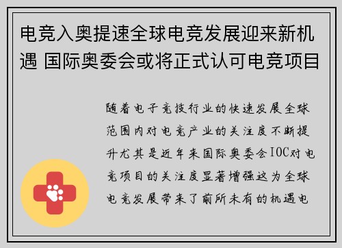 电竞入奥提速全球电竞发展迎来新机遇 国际奥委会或将正式认可电竞项目